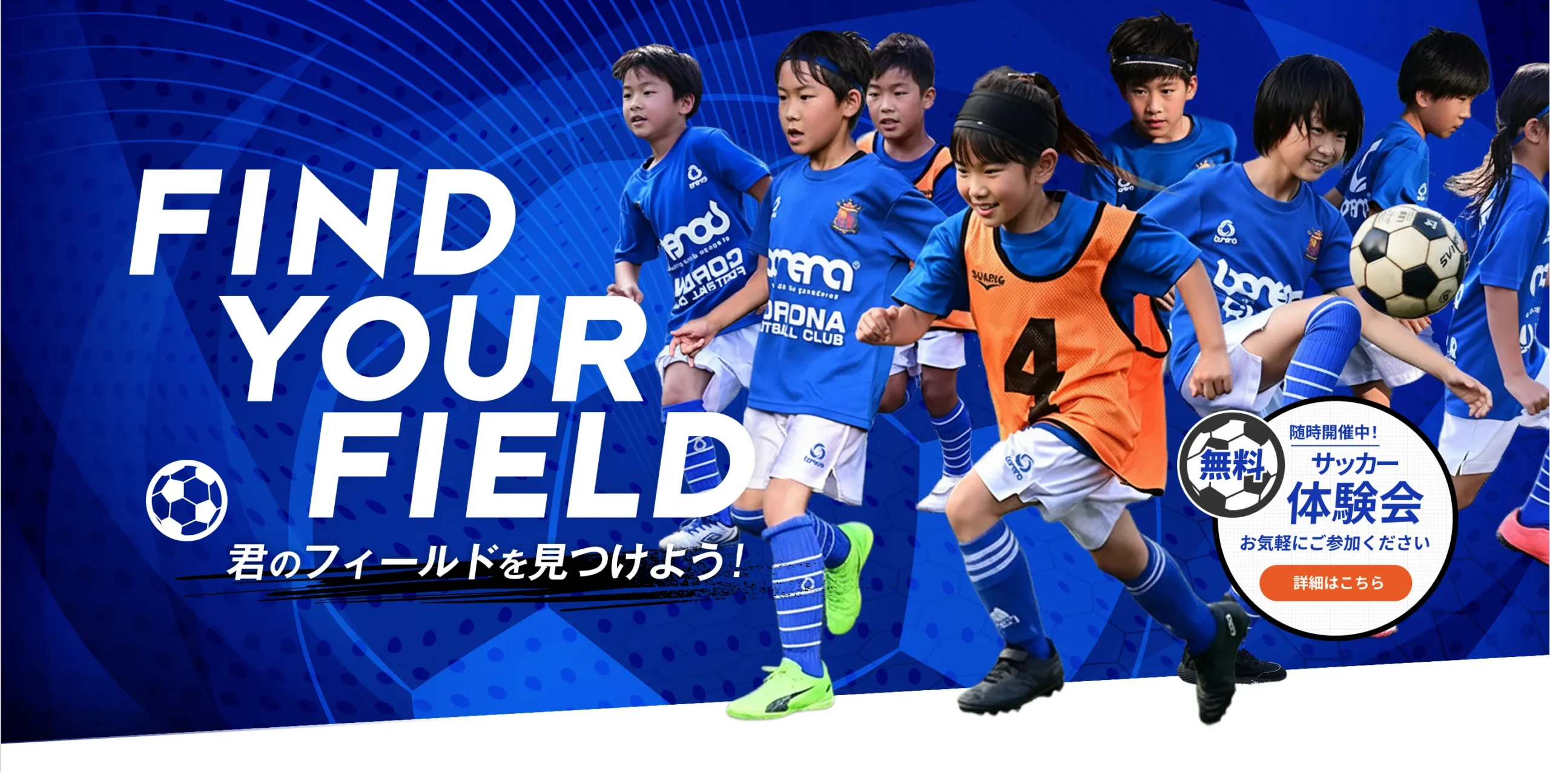 国際基準の人工芝コート3面完備の充実した環境で、年中のお子様から小学6年生まで一人ひとりのレベルに合わせた丁寧な指導を行います。